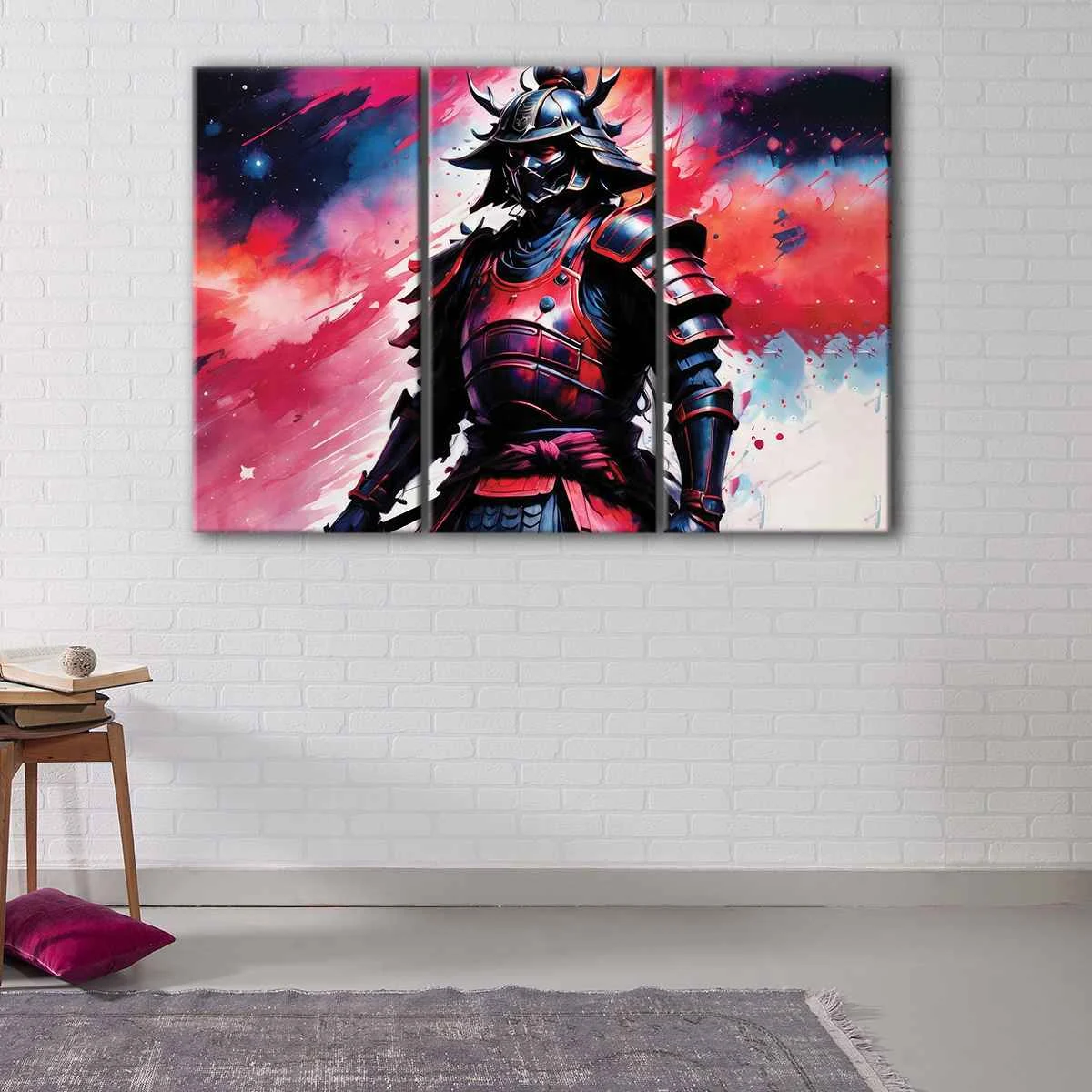 Our Red Samurai canvas art is created using premium poly-cotton canvas and pigment-archival inks, which provide high-definition prints with vivid colors that will last for over 100 years. This artwork is available in multiple sizes, making it easy to find the perfect fit for your living room, hallway, kids room, or dining room.