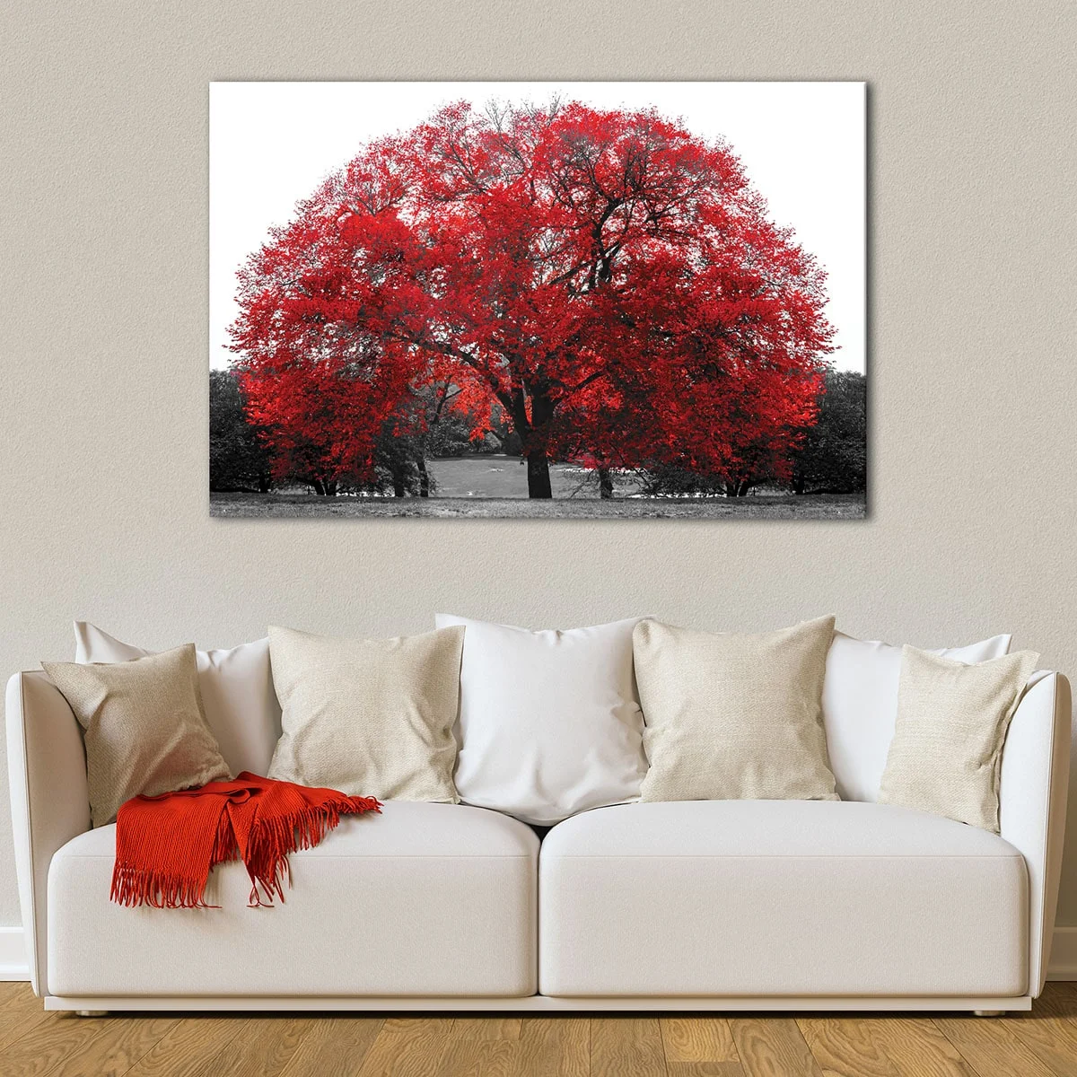 This beautiful red tree artwork makes a thoughtful and romantic gift for birthdays, anniversaries, or special occasions. It's also a great way to show appreciation for nature lovers or anyone who appreciates art. Spread love and elegance in your surroundings with this stunning colorful tree canvas wall art, available for sale at tourathy.com.