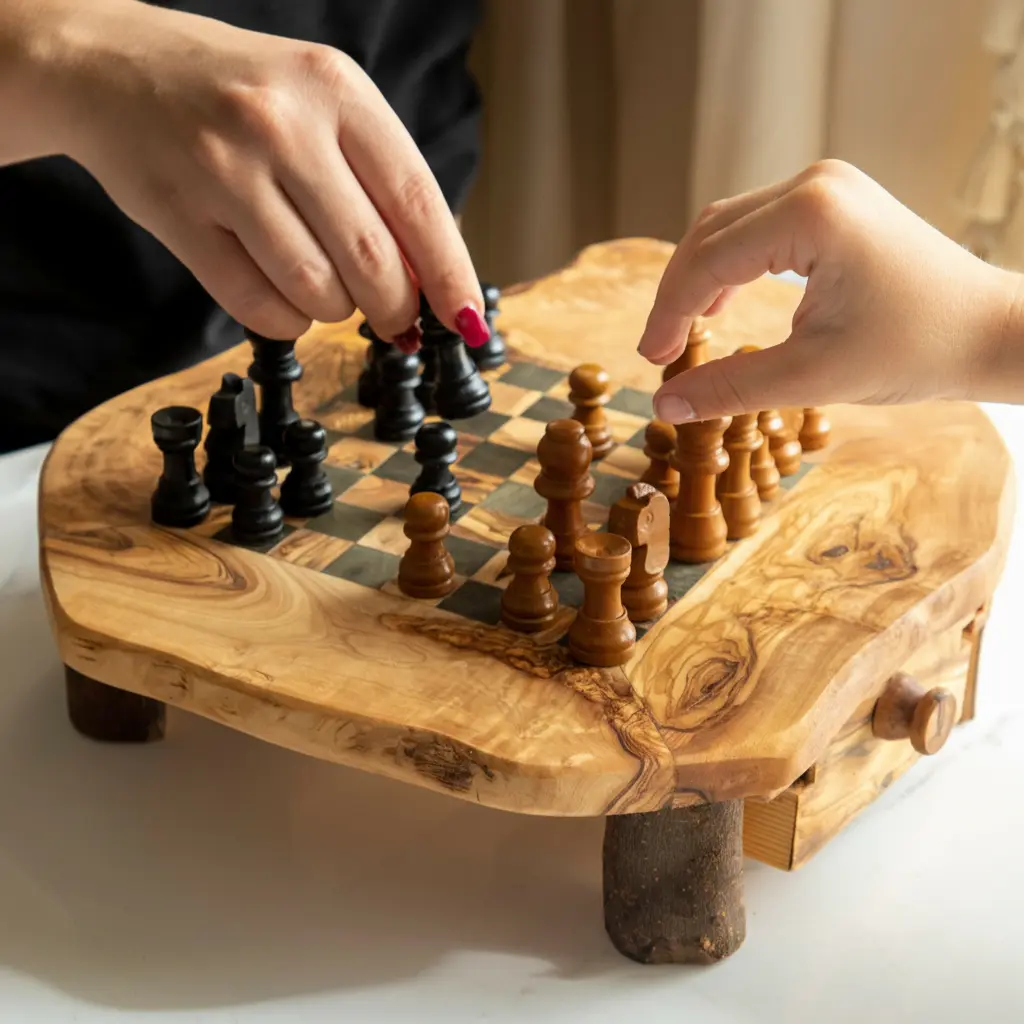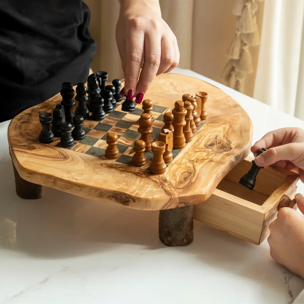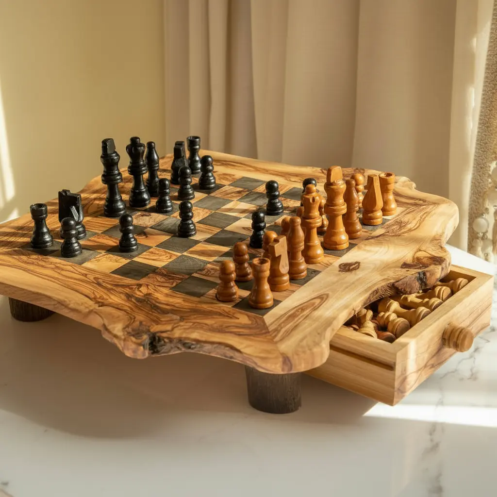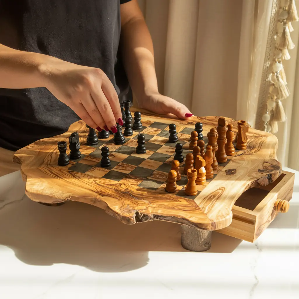 Perfect for family game nights, social gatherings, or quiet evenings at home, this chess board serves as both a functional game and decorative piece. Available in multiple sizes to suit different spaces and preferences, it offers flexibility for various needs. The combination of gameplay functionality and aesthetic appeal makes it an excellent gift for chess lovers and home decor enthusiasts alike. Whether displayed on a coffee table, bookshelf, or game room, this Artisraw chess board adds a touch of sophistication to any environment while providing endless entertainment opportunities.