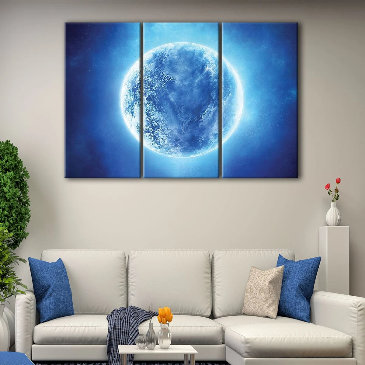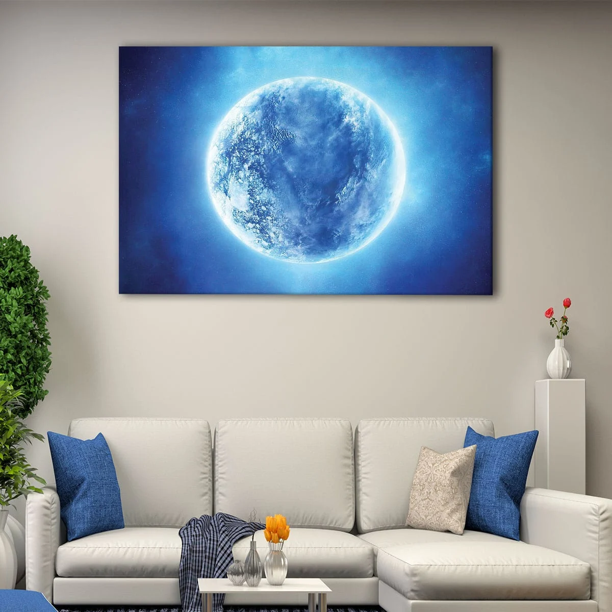 Available in 1 panel, 3 panels, or 5 panels, this stunning blue moon wall art is the perfect addition to any room in your home, from the living room to the bedroom. Its elegant design makes it a great conversation starter.