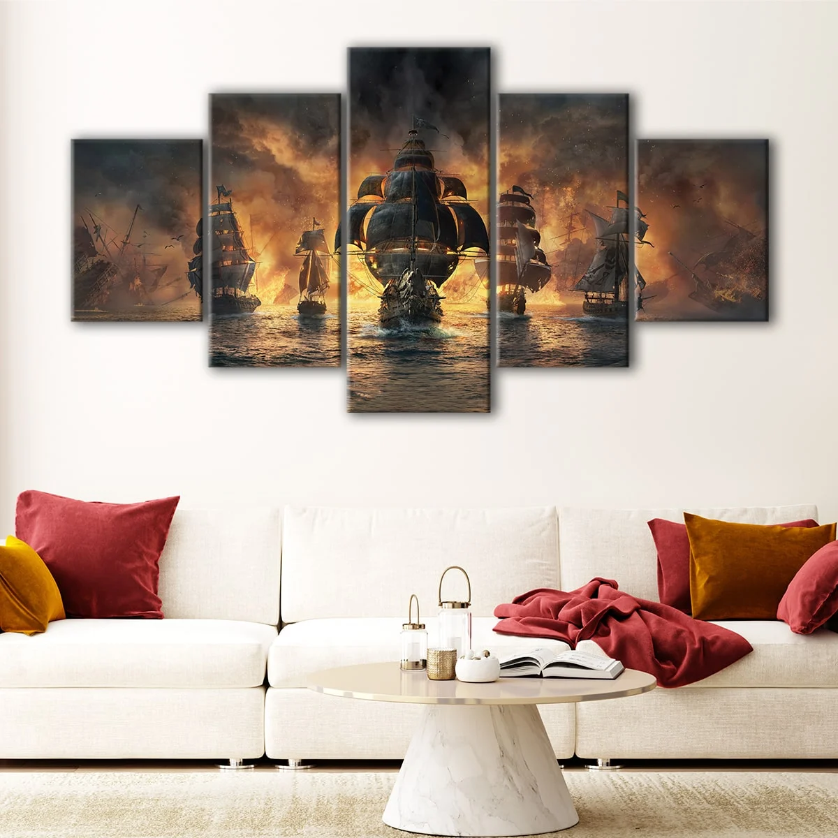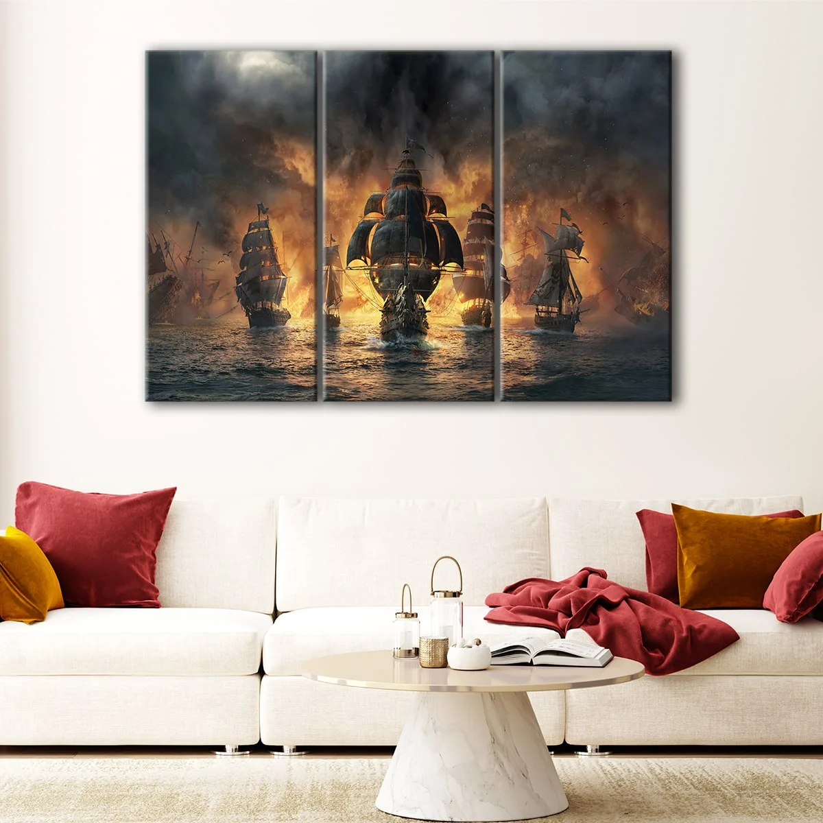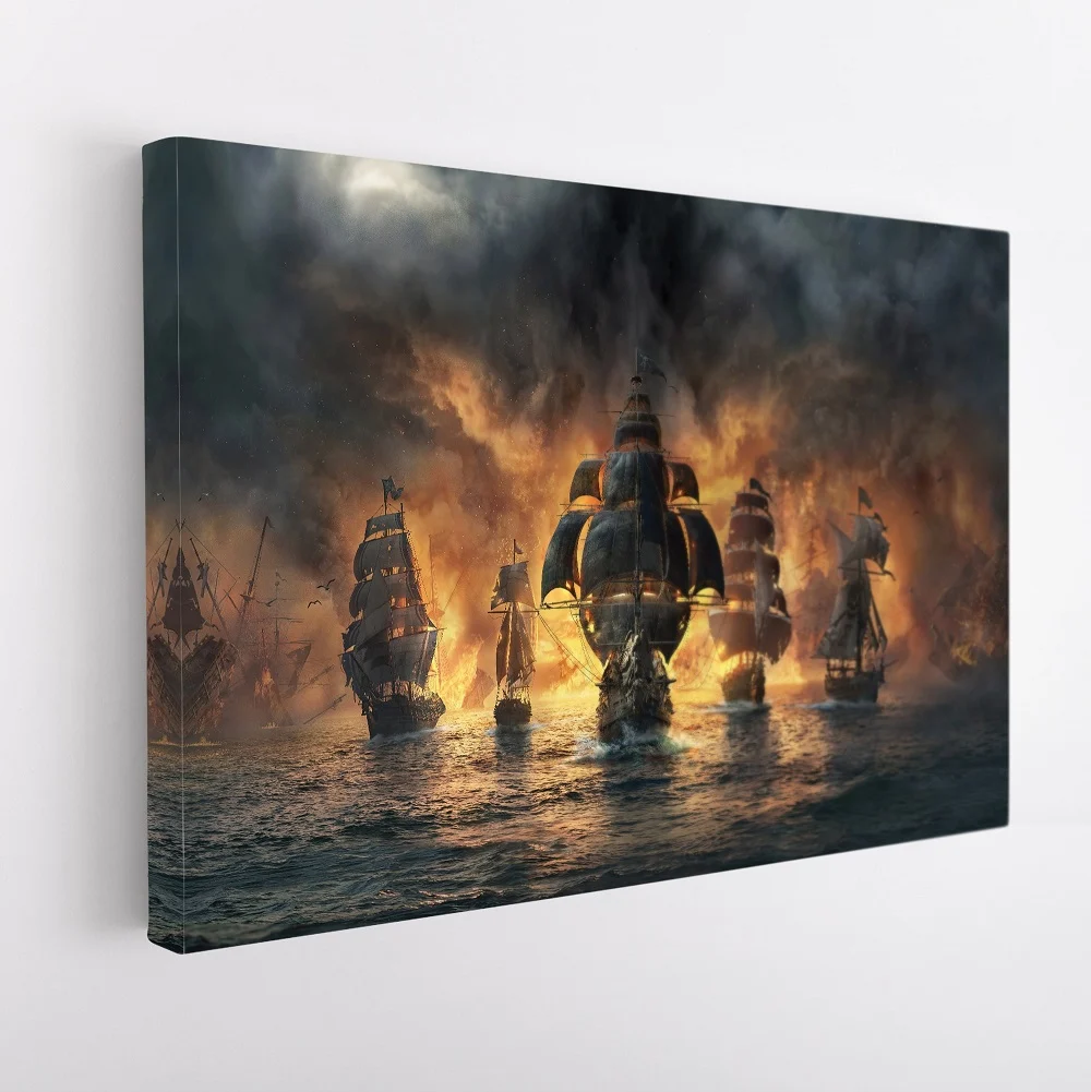 Makes a perfect birthday gift or anniversary gift for any fan of the Pirates of the Caribbean series. Give it to friends or family members who love fantasy movies or pirates at heart. Spread love and excitement in your surroundings by gifting this magnificent Ships In Fire canvas wall art. Available for sale at tourathy.com.