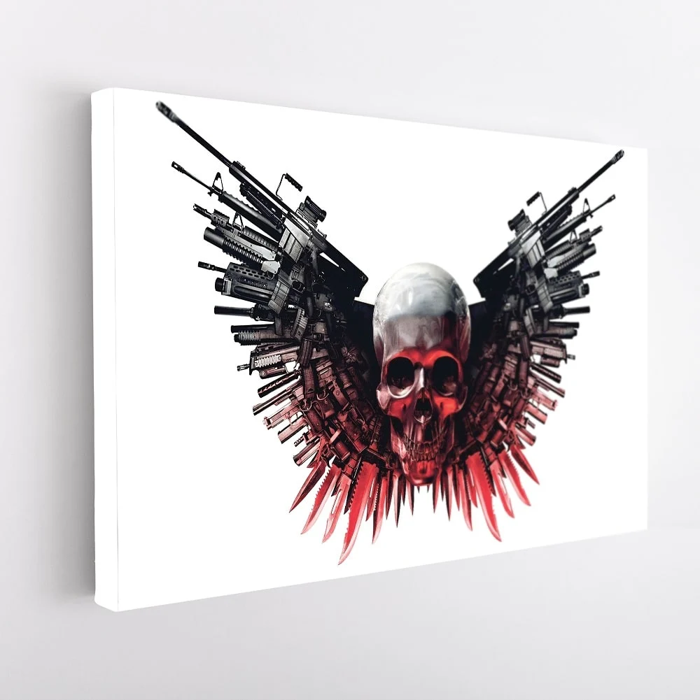 The Skull Guns canvas art is a premium, ready-to-hang wall decor that does not require any additional framing. Expertly crafted with 100% natural wood stretcher bars, this art piece is durable and long-lasting. The 100- plus year lifespan of the high-definition print is made possible by combining premium poly-cotton canvas with pigment-archival inks.