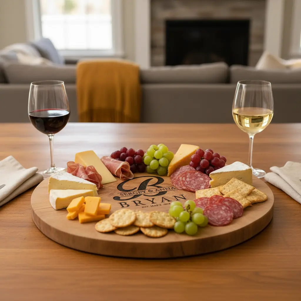 Ideal for entertaining guests or as a thoughtful gift, this artisan-crafted board enhances any dining occasion. Whether you're hosting a dinner party, celebrating a special event, or simply enjoying a quiet evening at home, this serving board adds a touch of sophistication to your table. Its versatile design makes it suitable for serving various foods beyond charcuterie, including desserts, breads, and appetizers.