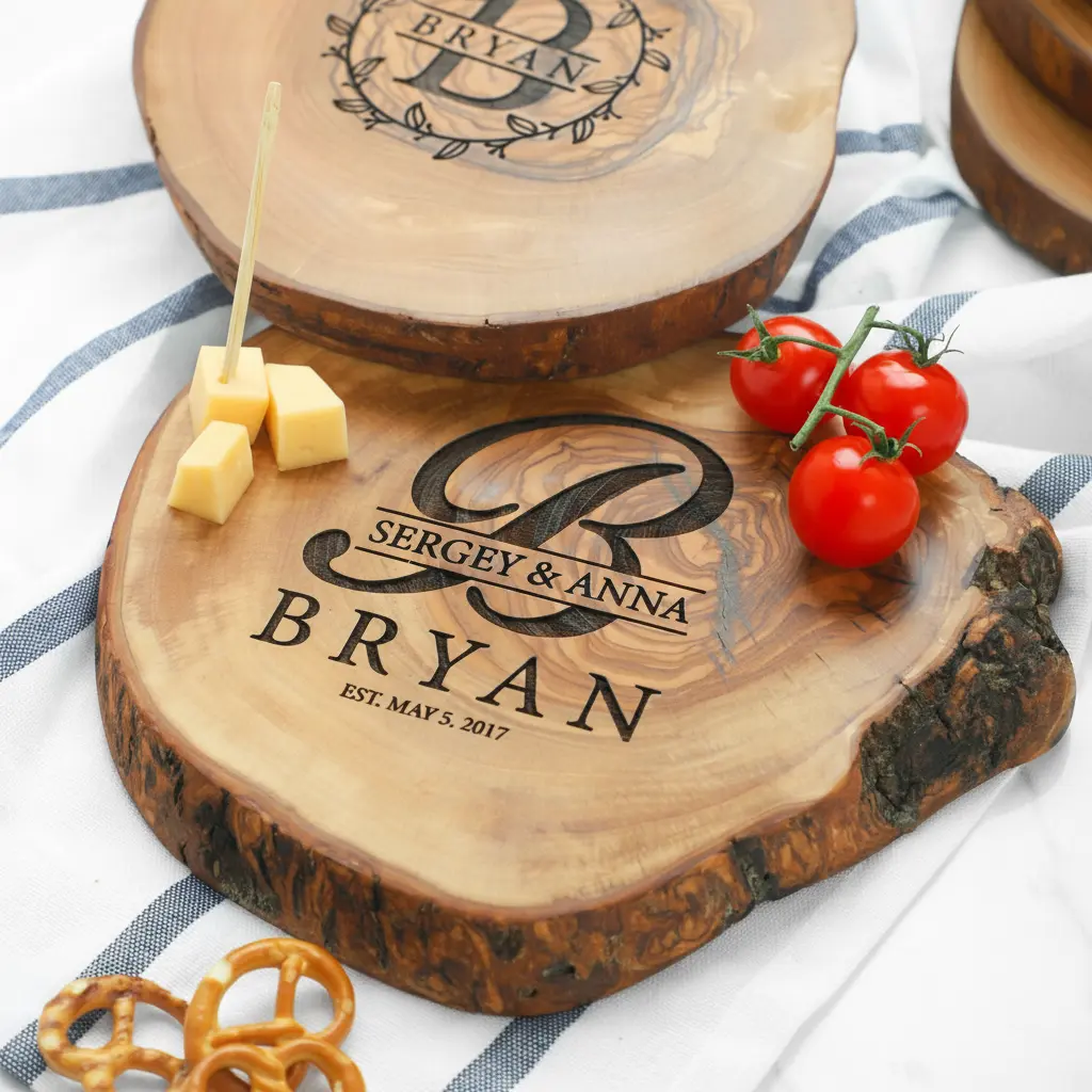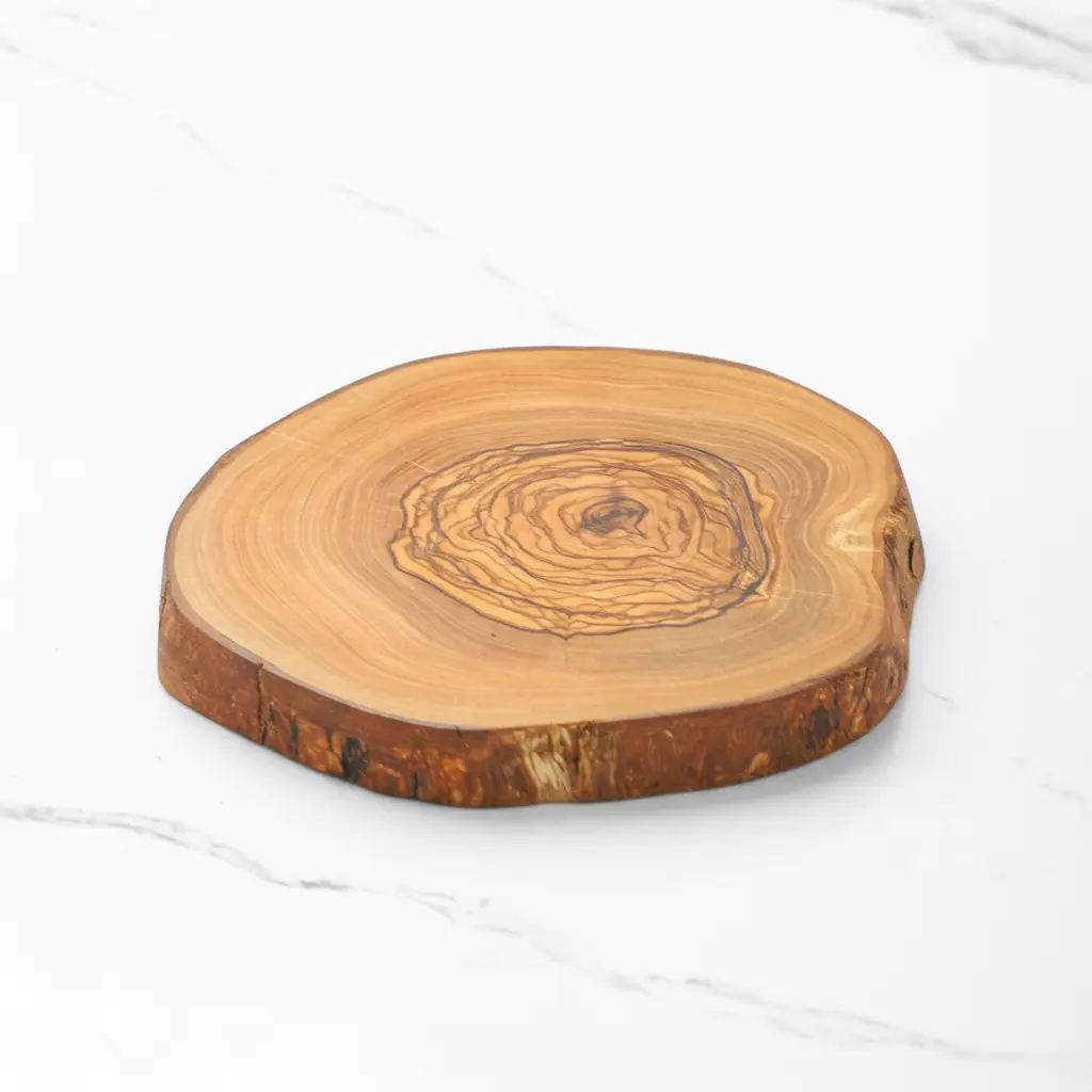 Elevate your dining experience with this unique, handmade olive wood serving board from Artisraw. Perfect for elegant cheese and charcuterie presentations, this small round board showcases the natural beauty of olive wood grain. Its durable construction ensures it will remain a beautiful and functional piece of serveware for years to come, making every meal presentation special and memorable.