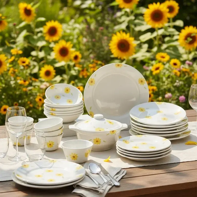 This comprehensive 21-piece set provides all the essential serveware and dinnerware you need in one beautiful package. You will receive a full suite of plates, bowls, cups, and saucers, all adorned with the same cheerful sunflower motif. The set is perfectly sized for serving four to six people, making it ideal for both daily family meals and entertaining guests without the hassle of mixing and matching.