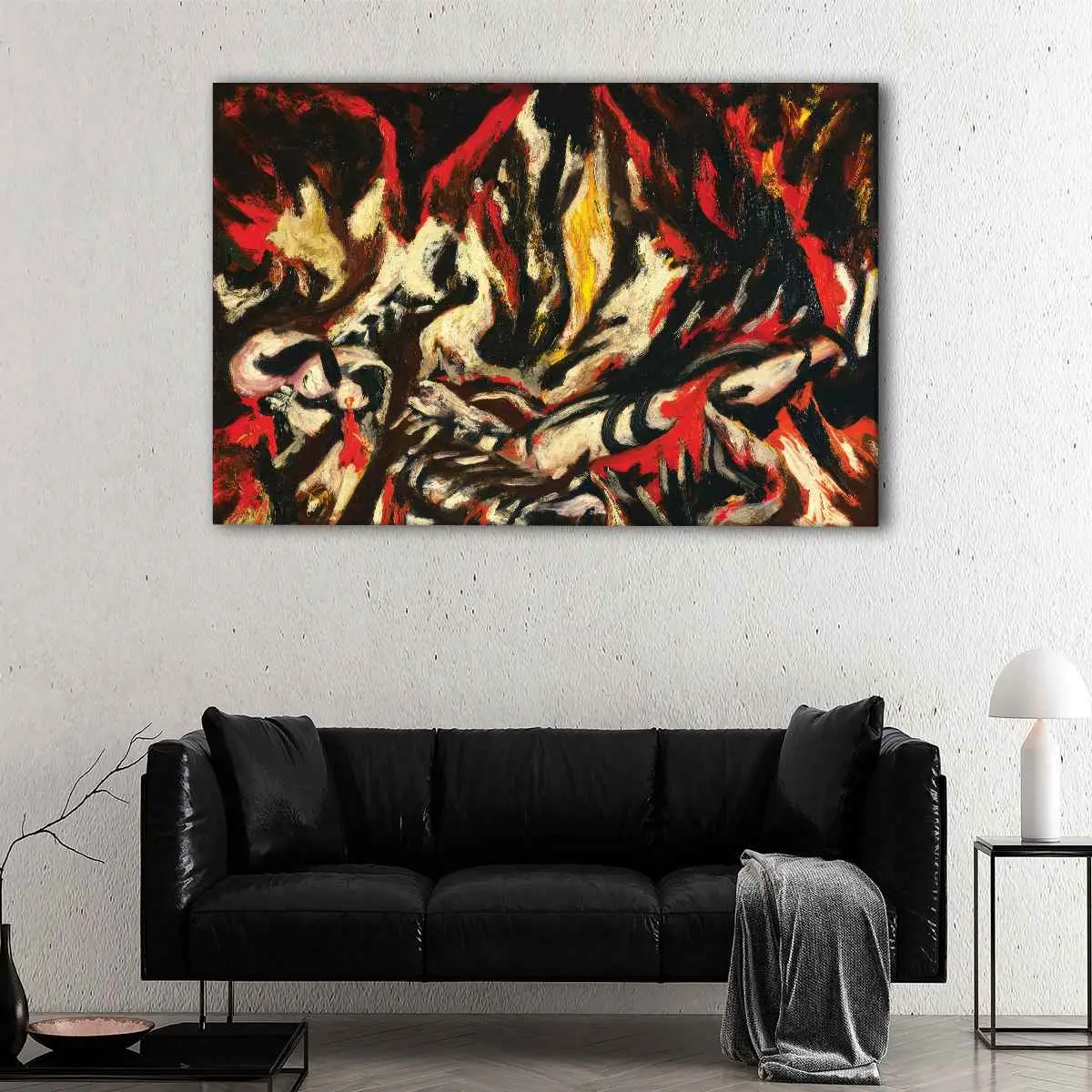 This exquisite print reproduction of Jackson Pollock's artistic masterpiece "The Flame" comes ready to hang, featuring metal saw-tooth hangers on the back and no need for additional framing. Our expert craftsman carefully hand-stretches the premium poly-cotton canvas over 100% natural wood stretcher bars, offering a truly professional finish.