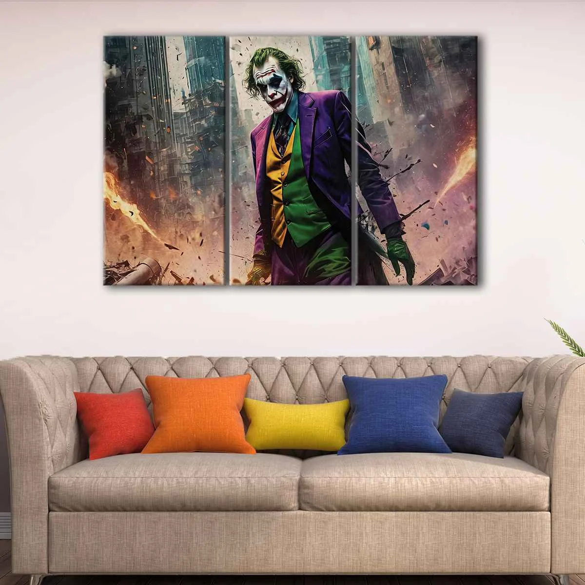 This Joker movie wall art is available in a range of sizes, from small to oversized canvas prints, ensuring that it will fit perfectly in your living room, hallway, kids room, or dining room. It's also available in various panel configurations:
