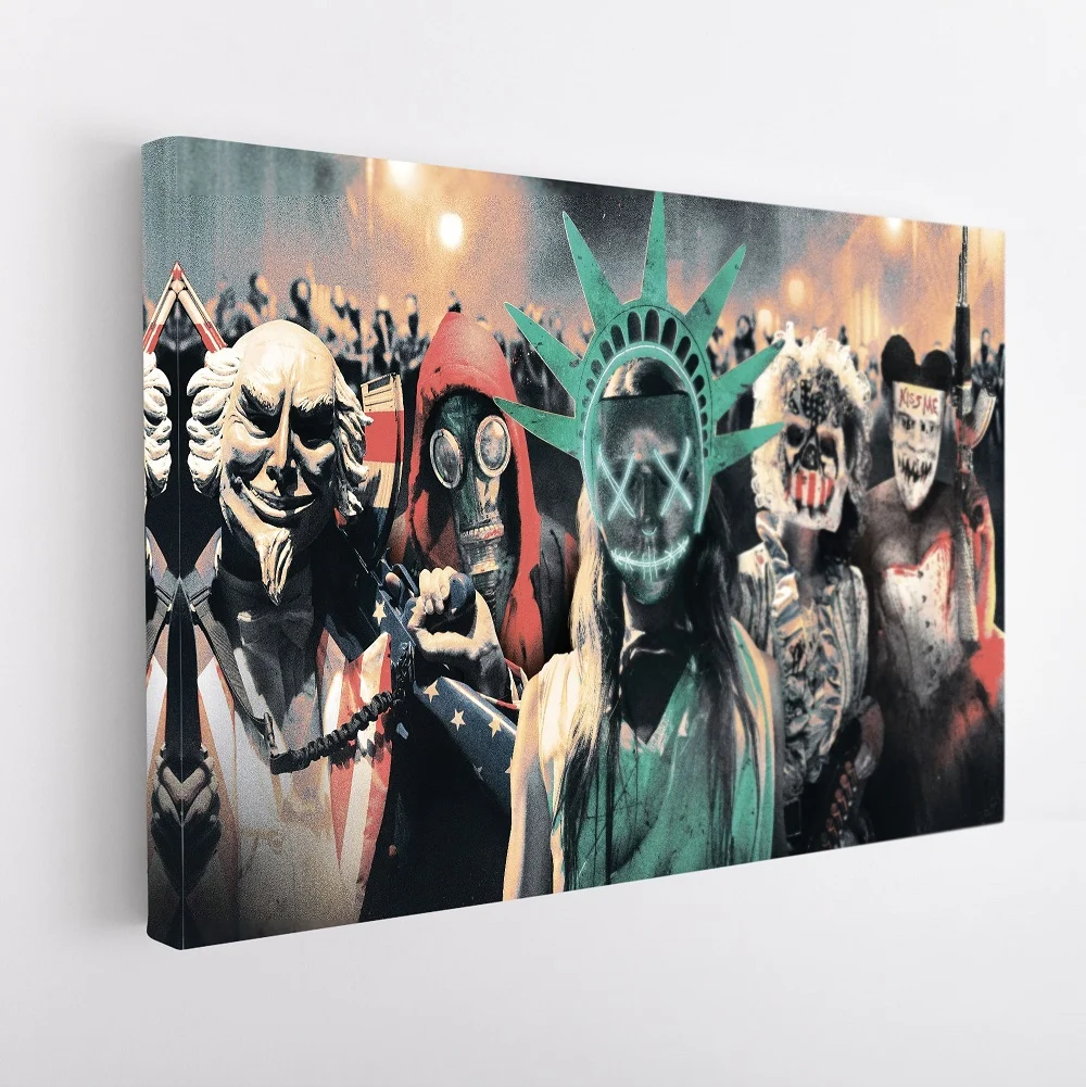 The Purge Election Year canvas art comes ready to hang with metal saw-tooth hangers on the back, requiring no additional framing. The canvas is carefully hand-stretched over 100% natural wood stretcher bars by our expert craftsman. We combine premium poly-cotton canvas with pigment-archival inks to deliver high-definition prints with vivid colors that last for 100+ years.