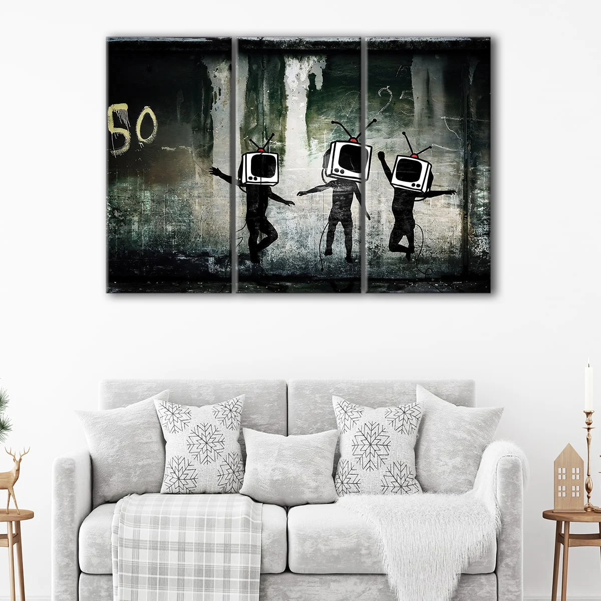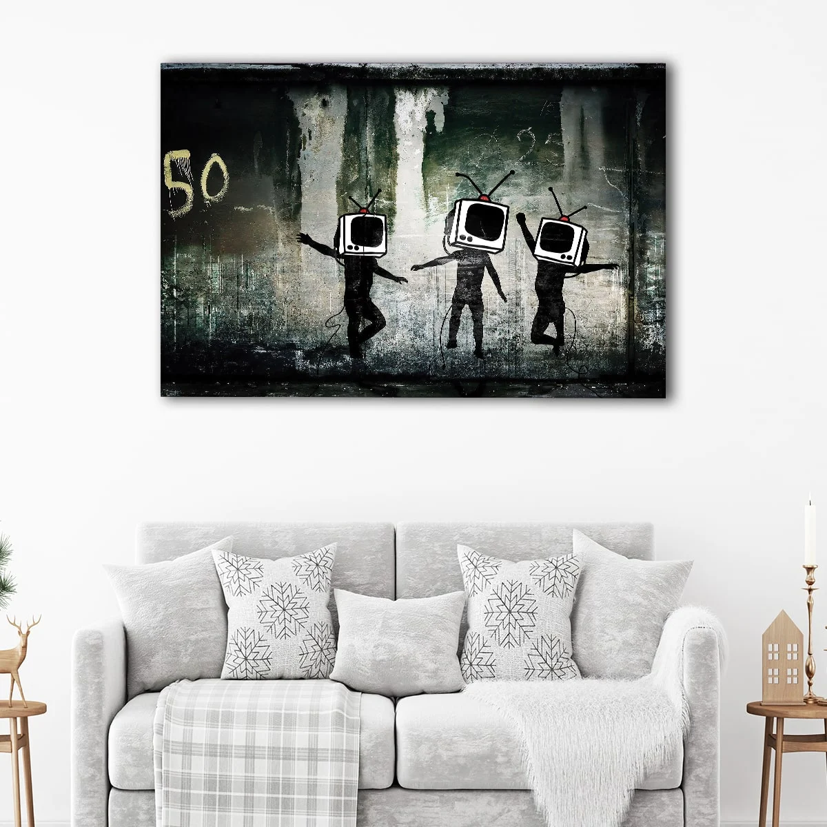 This captivating "TV Head Dance" artwork makes an ideal birthday or anniversary gift for those who appreciate unique and rebellious art styles. You can also offer it as a special present to anyone with a passion for graffiti and street art. Spread love and inspiration in your surroundings with this eye-catching canvas art piece, available for sale at tourathy.com.
