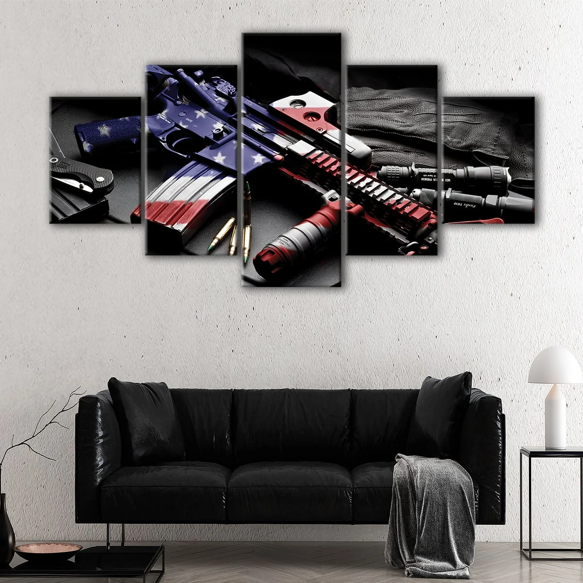 The USA M4 Gun canvas art is a stunning piece of wall decor available in 1, 3, or 5 panels, offering a unique and impressive addition to any room. Suitable for your living room, hallway, kids room or dining room, this canvas print is the perfect way to add some military flair to your home decor.