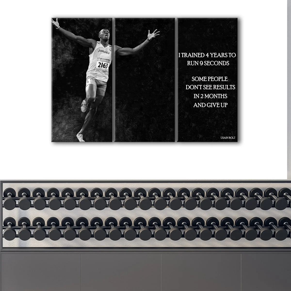 This Usain Bolt quote canvas art comes ready-to-hang with metal saw-tooth hangers on the back, and no additional framing is required. The canvas is carefully hand-stretched over 100% natural wood stretcher bars by our expert craftsman, making it a high-quality addition to any room. Our unique combination of premium poly-cotton canvas and pigment-archival inks produces high-definition prints with vivid colors that last for 100+ years.