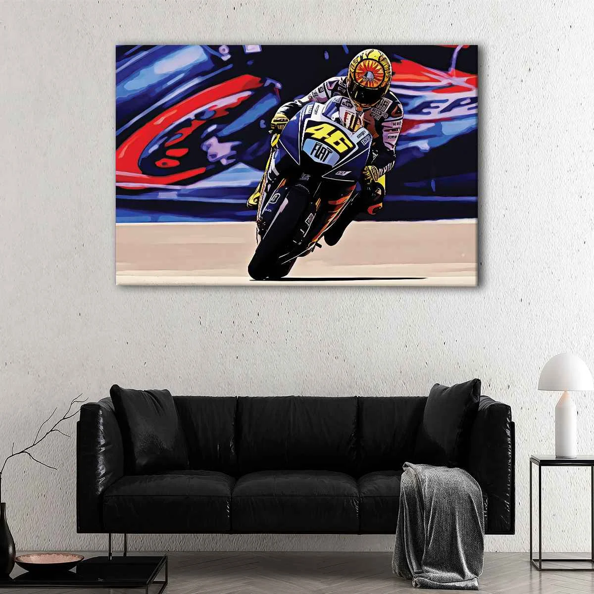 Bring the intensity of MotoGP to your living space with our high-quality Valentino Rossi canvas art. Carefully hand-stretched over 100% natural wood stretcher bars, our canvas is a masterpiece of craftsmanship.