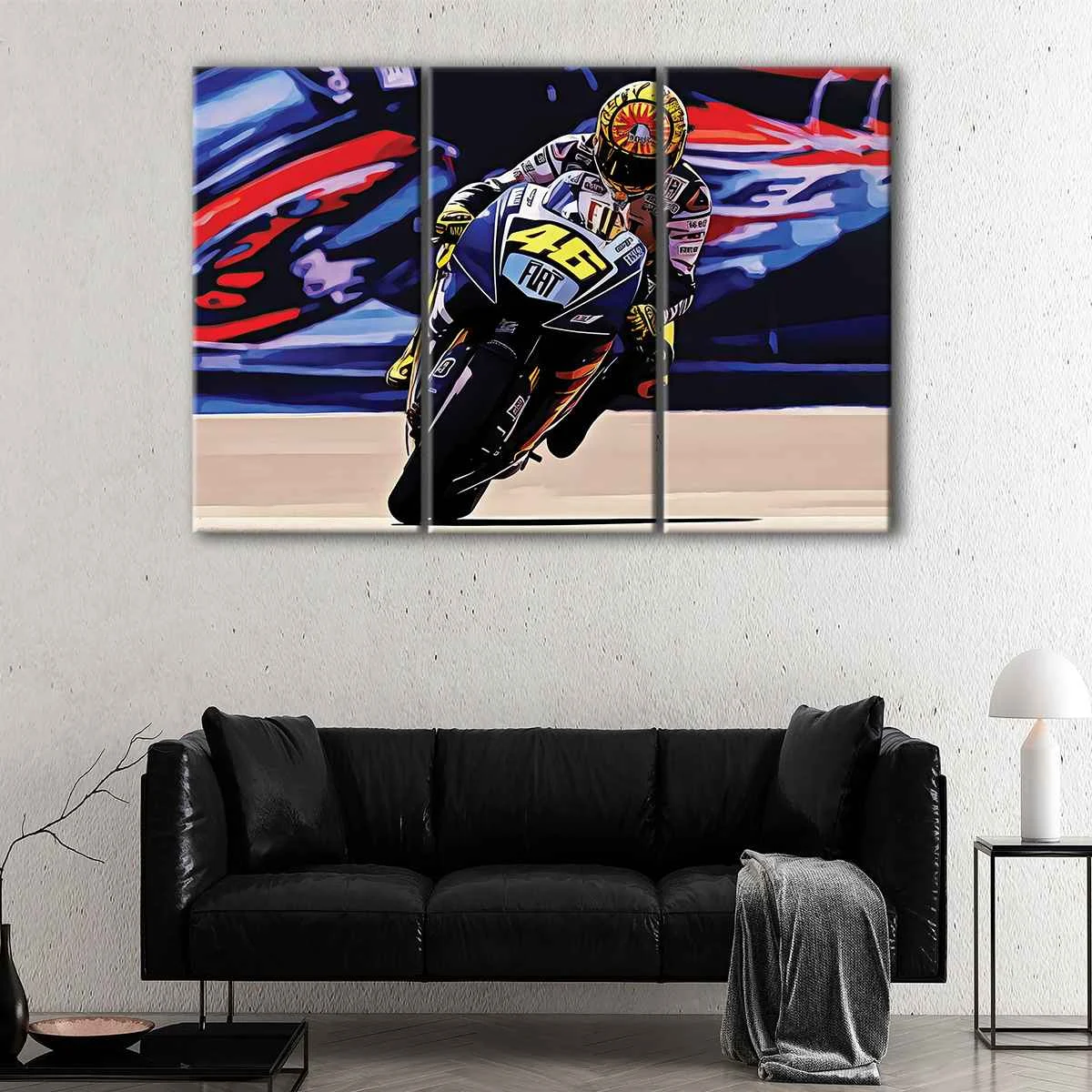 Searching for a unique gift for a friend or loved one? Our Valentino Rossi canvas wall art is the perfect solution. With its bold and vibrant colors, it's an ideal addition to any home or office.