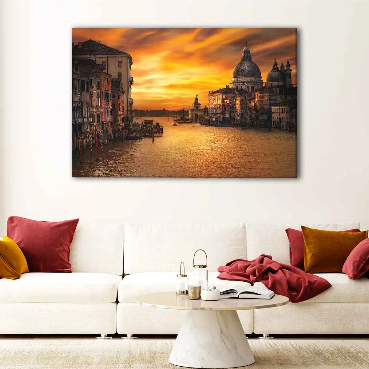 Available in a range of sizes, from small to oversized, this beautiful Venice sunrise artwork is perfect for any room in your home. Whether you're looking to add a touch of elegance to your living room, hallway, kids' room, or dining room, this stunning canvas print is sure to impress.
