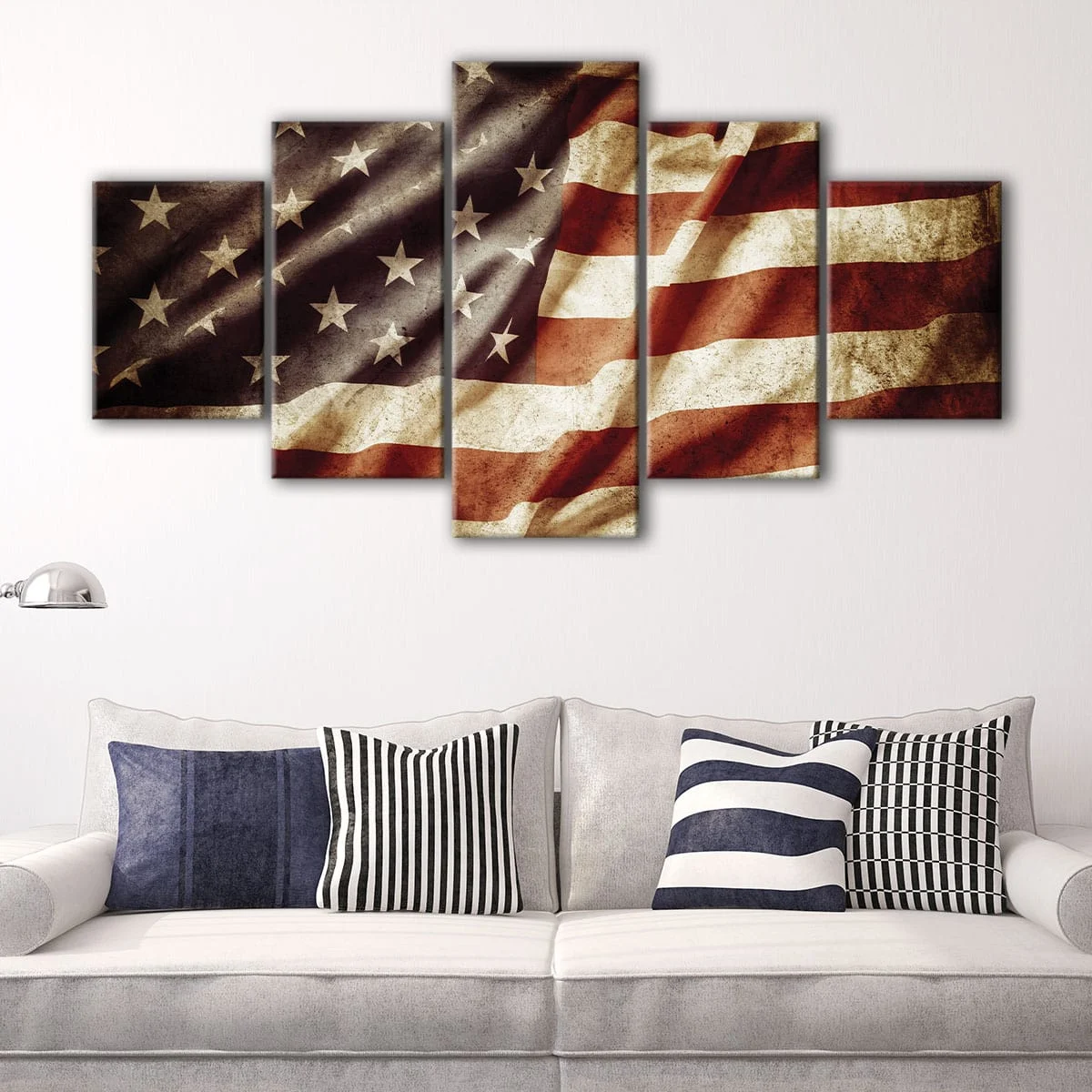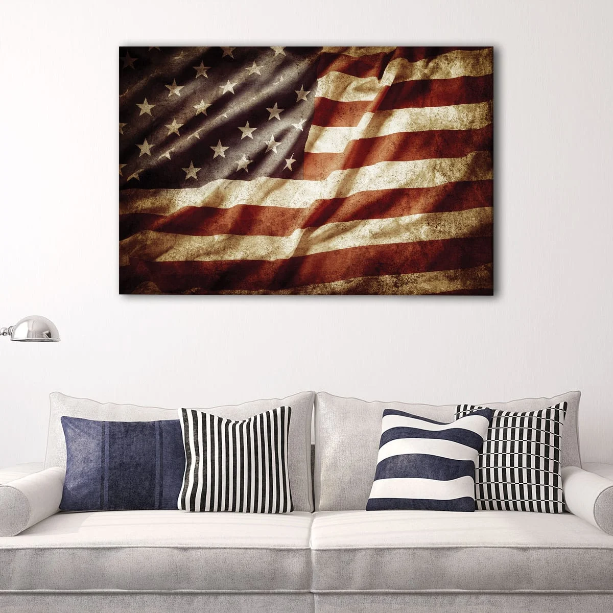 Available in a range of sizes, from small to oversized, this grunge USA flag wall art is perfect for your living room, hallway, kids' room, or dining room. Choose from 1-panel, 3-panel, or 5-panel options to fit your desired decor. Whether you're looking to add a touch of patriotism or a vintage vibe to your space, this flag canvas wall art is sure to impress.