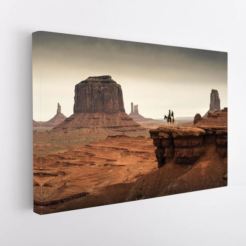 Featuring premium poly-cotton canvas and pigment-archival inks, this art piece boasts vivid colors that will last for 100+ years, providing a stunning visual experience that will captivate your senses. Whether you are a fan of classic Western movies or simply appreciate the beauty of the American Wild West, this art piece is sure to be a stunning addition to your home.