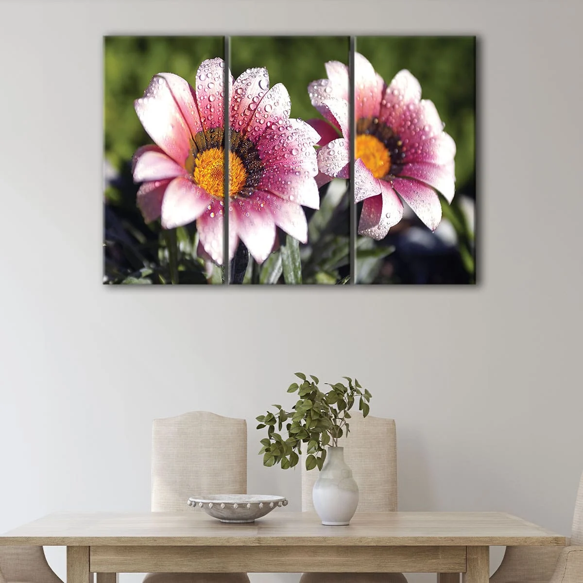 This beautiful Wet Flowers artwork is available in various sizes to fit any room in your home, from small to oversized. You can choose from 1-panel, 3-panel, or 5-panel options to create a stunning display that showcases your personal style.