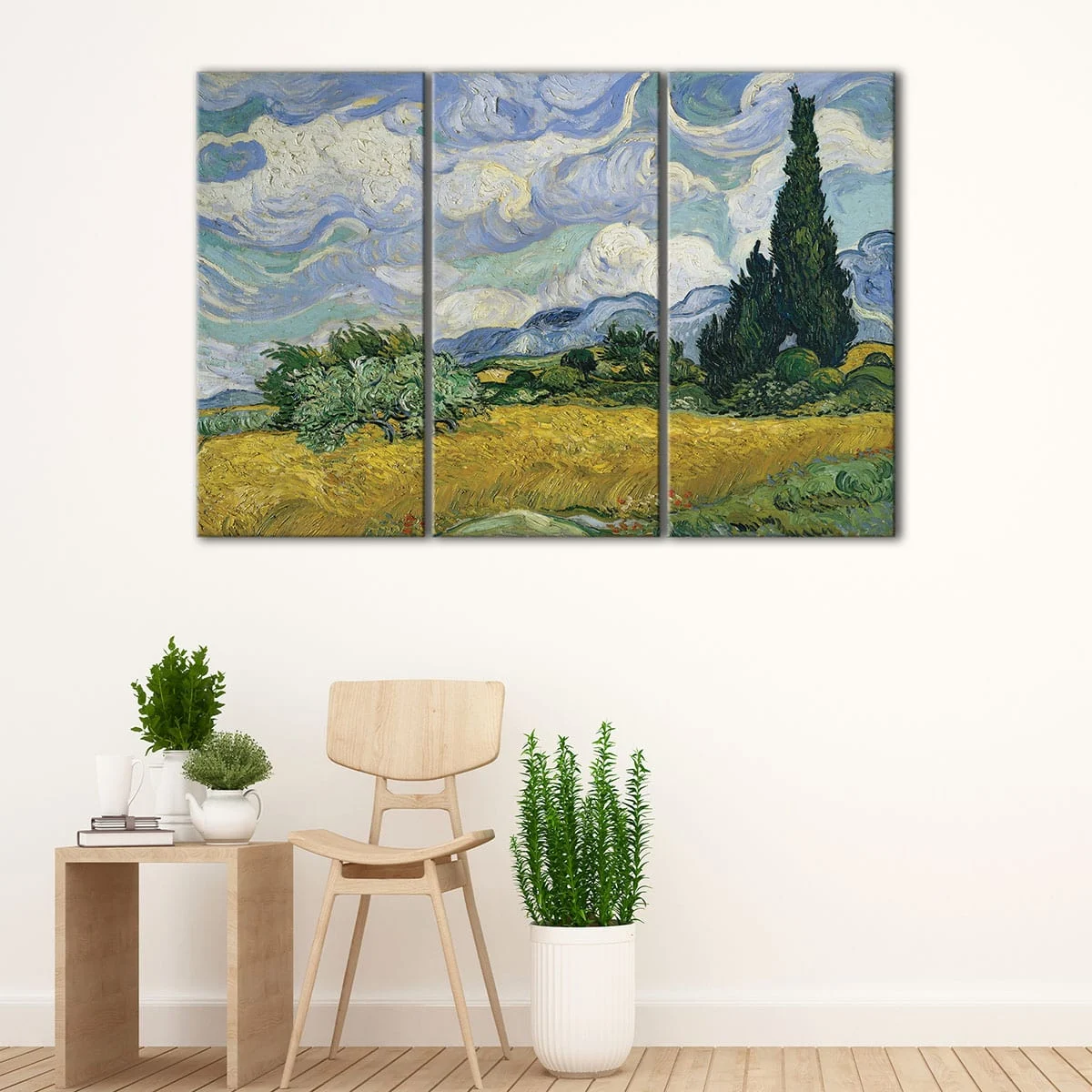Bring the beauty of nature to your walls with our stunning Wheat Field With Cypresses canvas art. This high-quality print is carefully hand-stretched over 100% natural wood stretcher bars, ensuring a durable and long-lasting piece of art. Our expert craftsman combines premium poly-cotton canvas with pigment-archival inks to produce vibrant colors that will last for 100+ years.