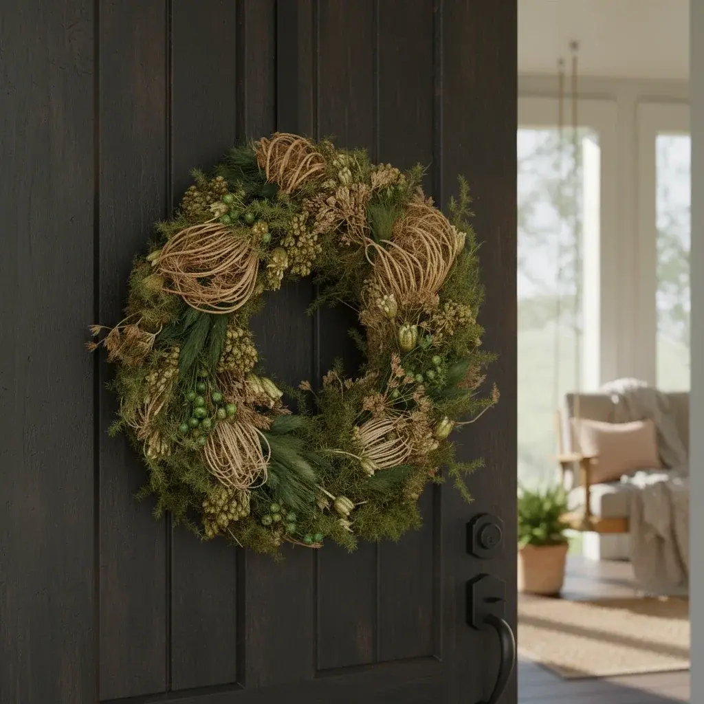 Our Wild Gold Wreath is more than just decor; it is a piece of art. The carefully selected dried florals and foliage are arranged to create depth, texture, and a sense of organic movement. This wreath arrives ready to display, requiring no maintenance while providing year-round beauty. Transform your space with a touch of wild, golden elegance today.