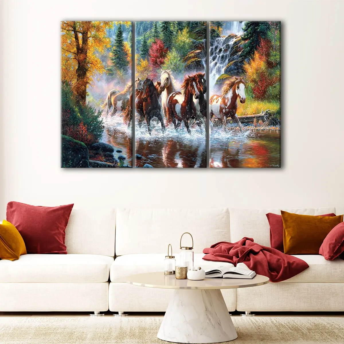 Available in a range of sizes, from small to oversized, this captivating running horses wall art is perfect for any room in your home, including the living room, hallway, kids' room, or dining room. Dine on the distinct quality and beauty of this well-designed and compassionate heartwarming artwork. Plus, choose from 1-panel, 3-panel, or 5-panel options to suit your unique style and decor.